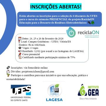 📢 INSCRIÇÕES ABERTAS – CURSO DE EXTENSÃO (ReciclaON UFES)